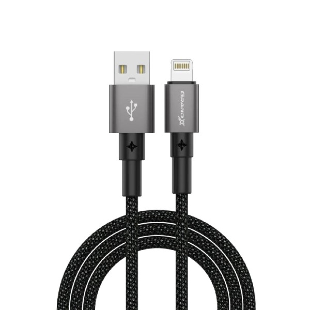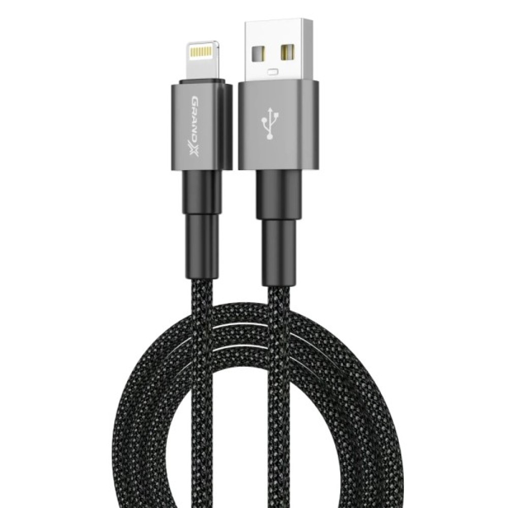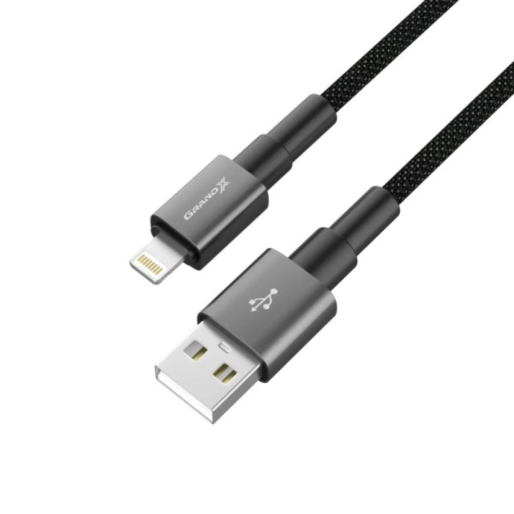 Дата кабель USB 2.0 AM to Lightning 1.0m 2.4A black Grand-X (PL-08B)