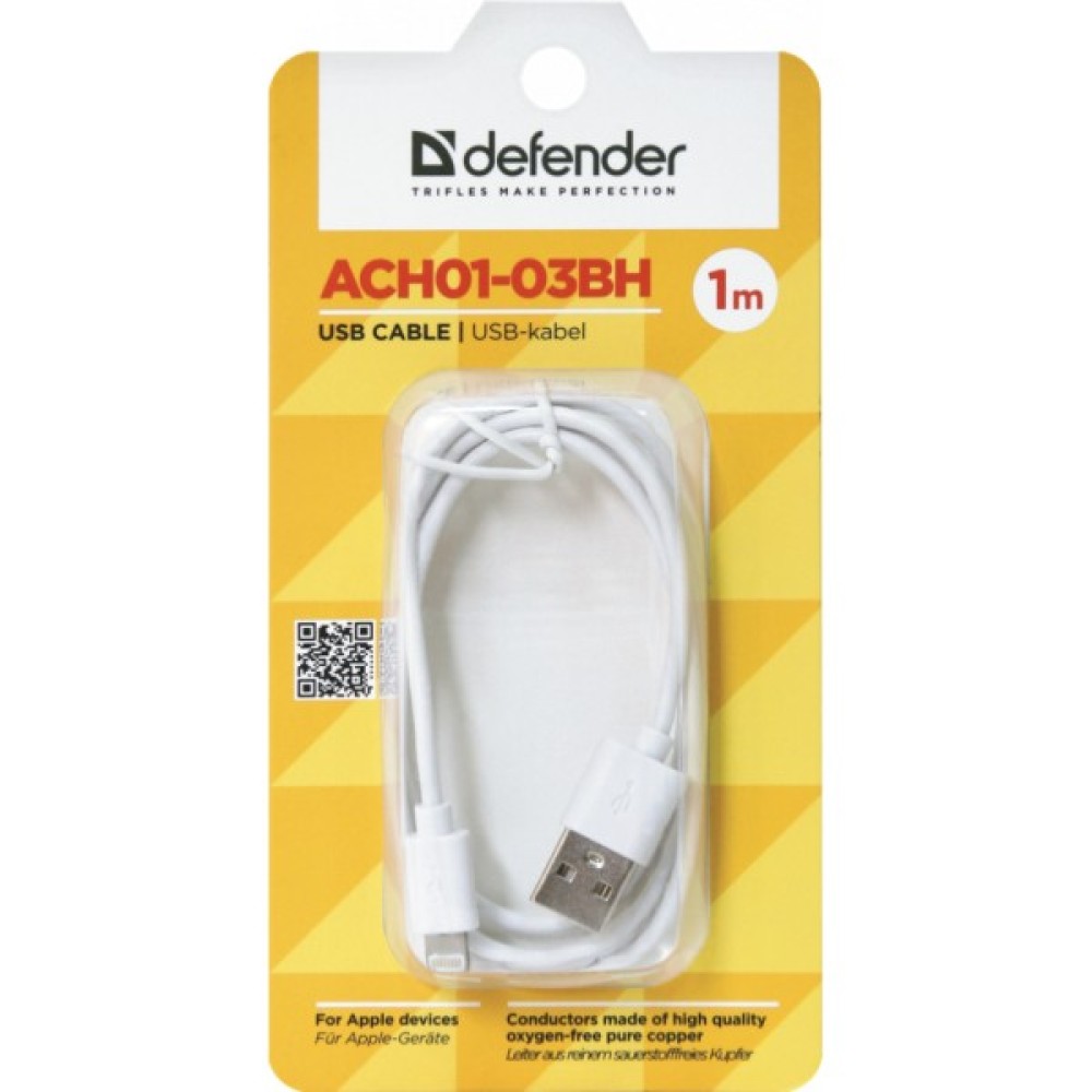 Дата кабель Defender ACH01-03BH USB - Lightning, white, 1m (87479), білий - 1 метр, блістер являє собою прекрасний зразок вдалого поєднання невисокої ціни і гідної якості, а також привабливого дизайну і функціональності.