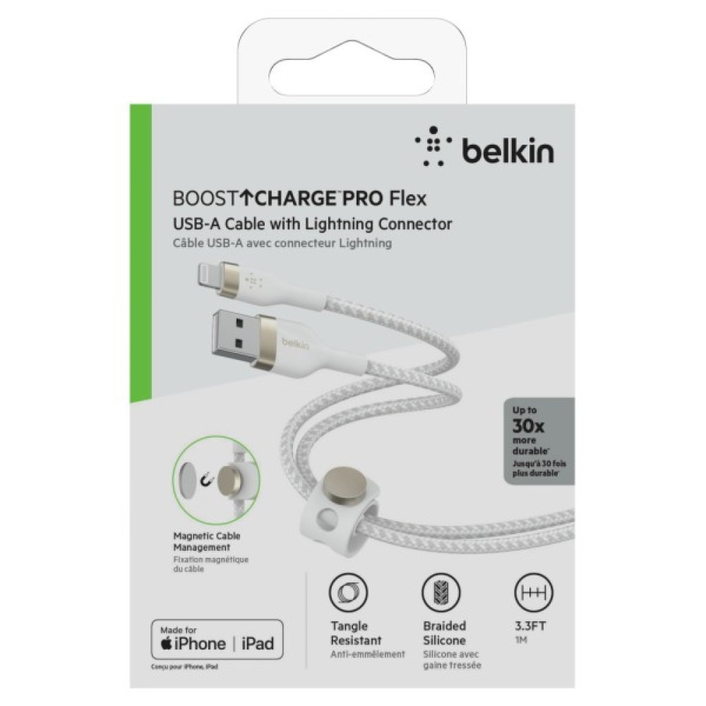 Силіконові кабелі BELKIN створені для того, щоб витримувати щоденне навантаження і забезпечували тривалу міцність, яка у 25 разів вища, ніж у звичайних кабелів. Поставляється з ремінцем і магнітною кнопкою для клейкої металевої пластини, так що ви можете легко зберігати зарядний кабель у будь-якому місці. Інтерфейси Кабельна основа виконана із сатинованого алюмінію для додаткової міцності та стилю.
