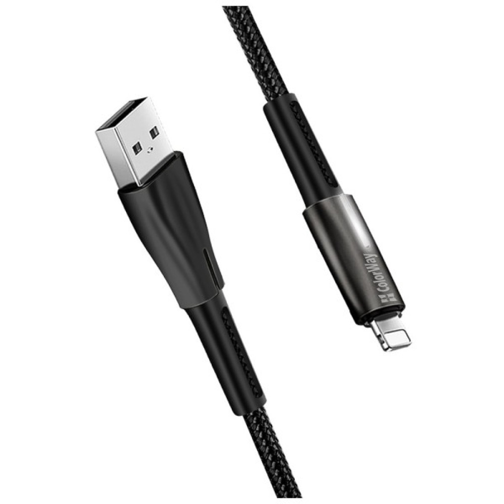 Дата кабель USB 2.0 AM to Lightning 1.0m zinc alloy + led black ColorWay (CW-CBUL035-BK)