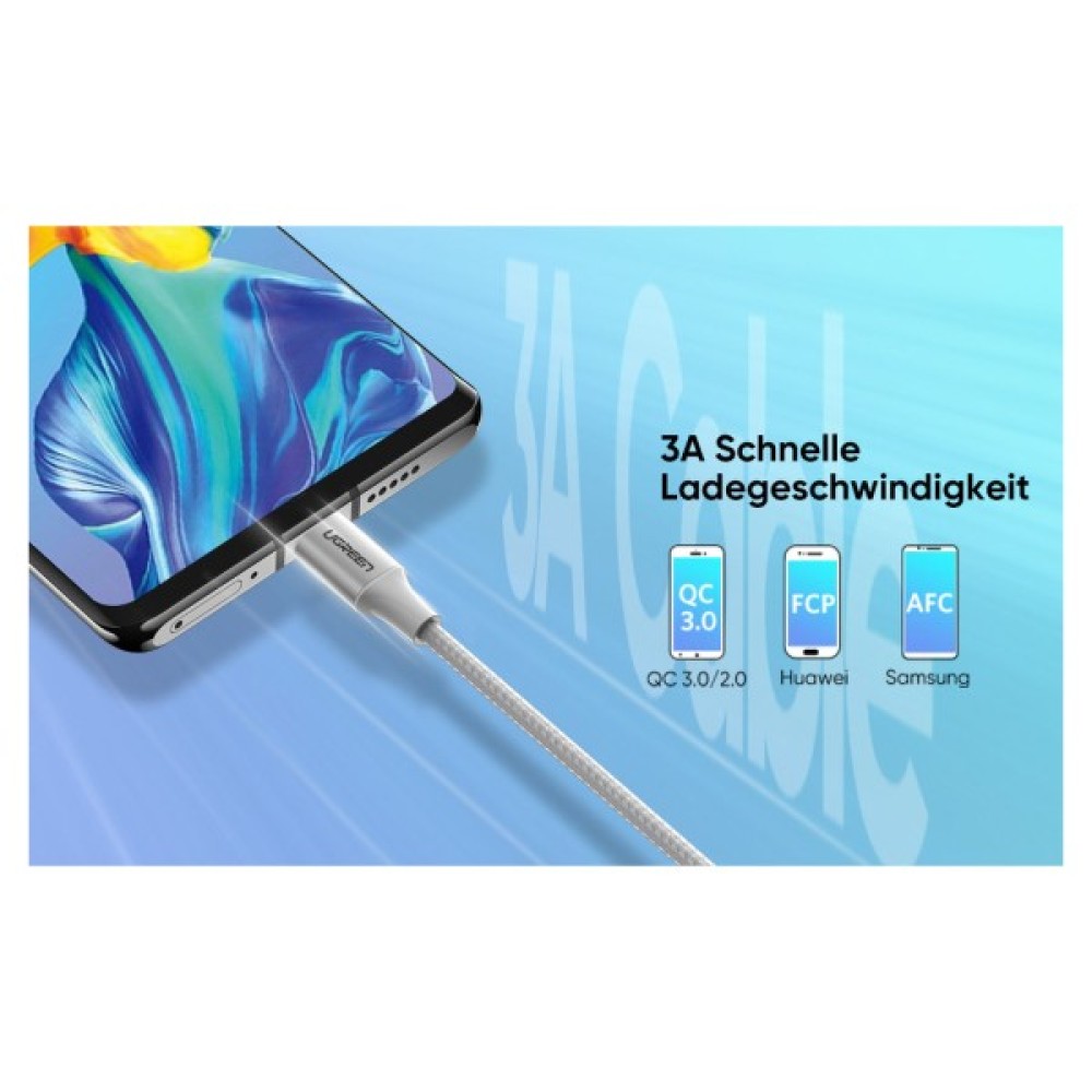 Дата, кабель, USB, 20, AM, to, USBC, 025m, 3A, braided, US288, white, Ugreen, 60129