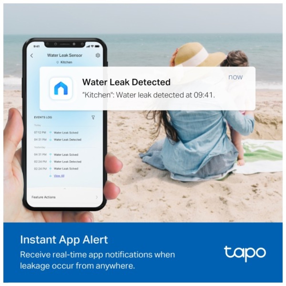 Завдяки 6 високочутливим датчикам зверху та знизу, розумний датчик витоку води Tapo виявляє як витік води, так і затоплення та негайно попереджає вас сигналізацією 90 дБ. Він також може активувати сигналізацію хаба для додаткового звукового сигналу тривоги. Тепер ви можете негайно втрутитися та запобігти гіршому пошкодженню.