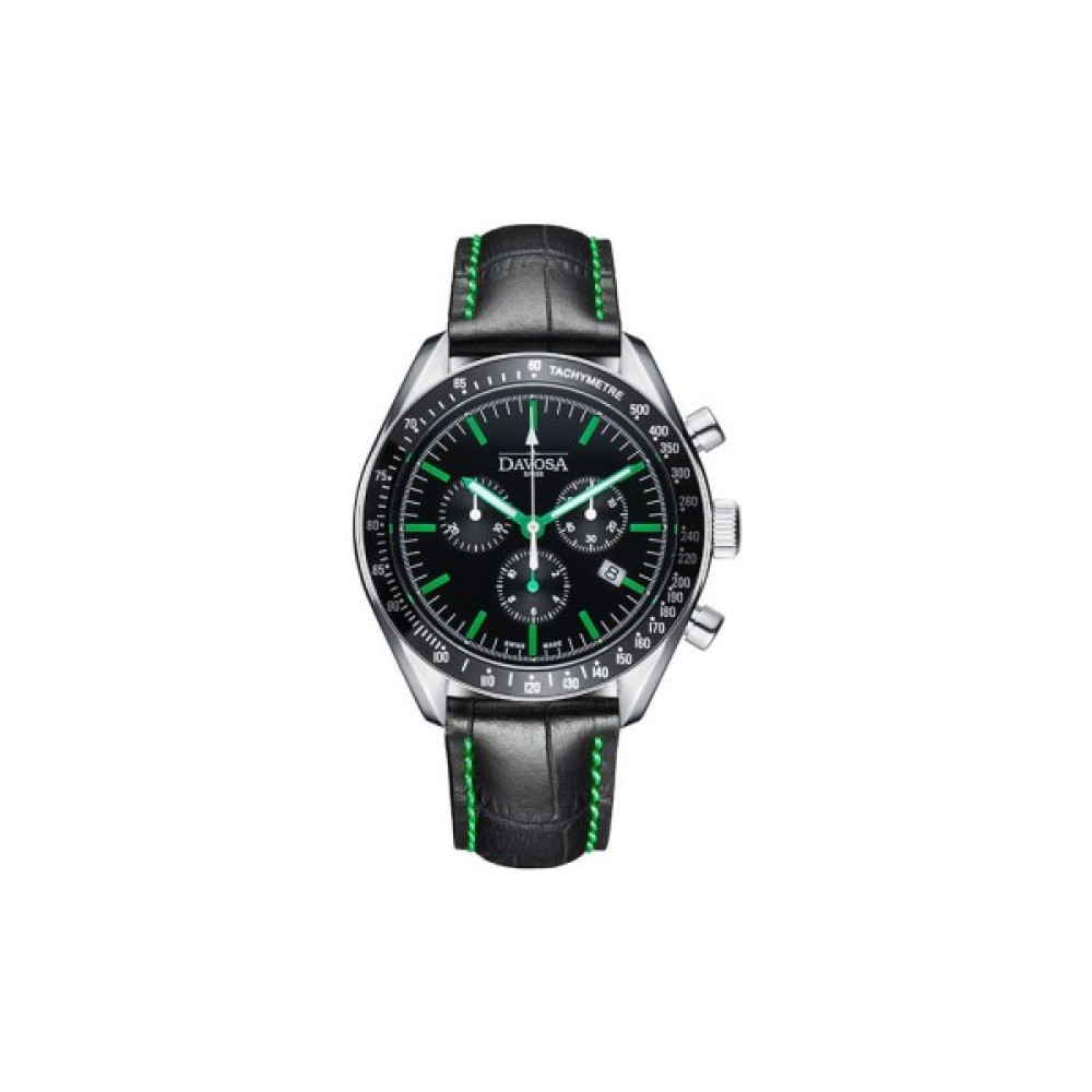 Це чоловічий, спортивний хронограф з класичними елементами дизайну, якому надають освіжаючий динамізм чотири можливі гами кольорів. Зелений, синій, помаранчевий або білий колір стрілок і міток на циферблаті, а також рядки на шкіряному ремінці. Короткий сталевий корпус 42 мм, ідеальний для "середнього зап'ястя", формує основу цієї зразкової колекції. Стійке до подряпин сапфірове скло, і задня кришка, що загвинчується, гарантують довге життя, і водонепроникність до 50 метрів. Надійний швейцарський кварцовий механізм хронографа показує час, дату. А за допомогою тахіметричної шкали на безеле можна встановити швидкість руху.