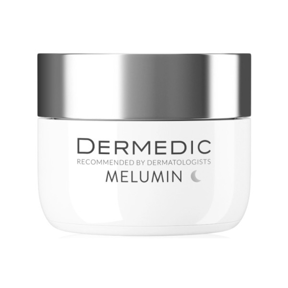 Нічний крем-концентрат Melumin від бренда Dermedic забезпечує шкірі дбайливий догляд під час сну та допомагає позбутися різних проявів пігментації. Він містить ексклюзивний запатентований комплекс Melumin Tristage, який пригнічує активність тирозинази, уповільнює синтез меланіну в меланоцитах і знижує швидкість перенесення меланіну в епідерміс. Це дозволяє запобігти повторній появі пігментних плям.