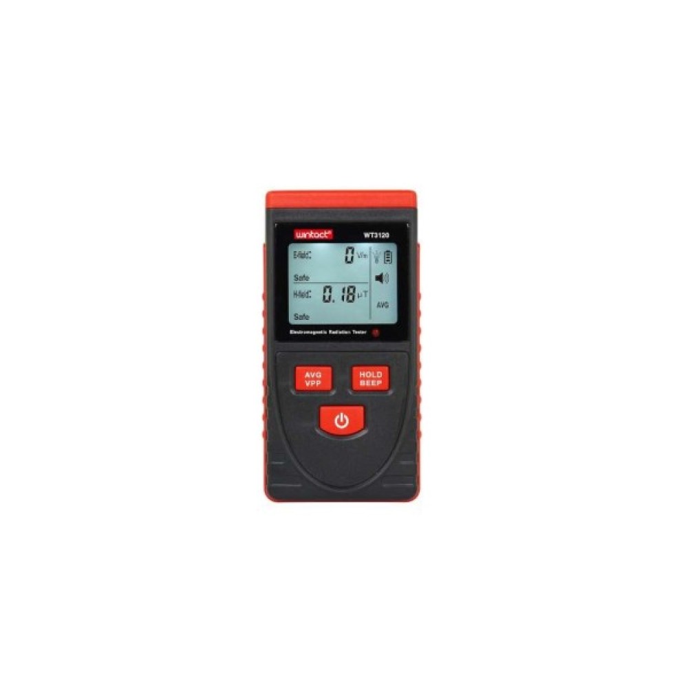 Детектор електромагнітного випромінювання WINTACT WT3120 це прилад, який призначений для вимірювання параметрів електромагнітного поля. Електричне і магнітне поле - це складова частина електромагнітного випромінювання. Прилад являє невеликий коробок. На передній панелі розташований екран ЖК. Під екраном знаходиться світлодіод червоного кольору, який спрацьовує при пікових показаннях приладу сигналізуючи про небезпечне електромагнітне випромінювання. Ще нижче розташовано три кнопки управління: