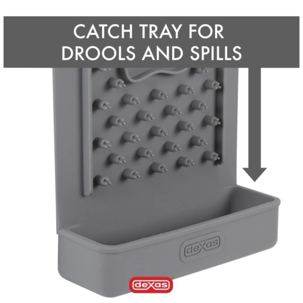 DEXAS Snack & Distract Vertical – вертикальний силіконовий килимок для злизування ласощів, допоможе відволікти та заспокоїть вашого вихованця під час стресу. Горизонтальний килимок для злизування ласощів з силіконовими потроєними на кінчиках виступами, допомагає собакам та котам впоратись з тривогою та нудьгою під час: подорожей, візиту до ветеринара, купання, підстригання кігтів тощо.