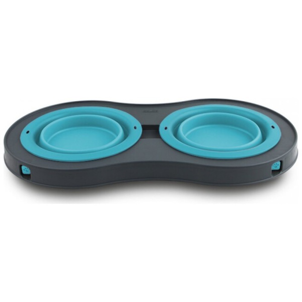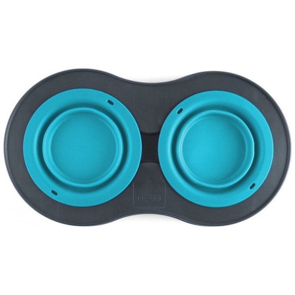 Посуд, собак, Dexas, Миска, подвійна, складній, підставцівелика, 600, мл, блакитна, 0084297306892