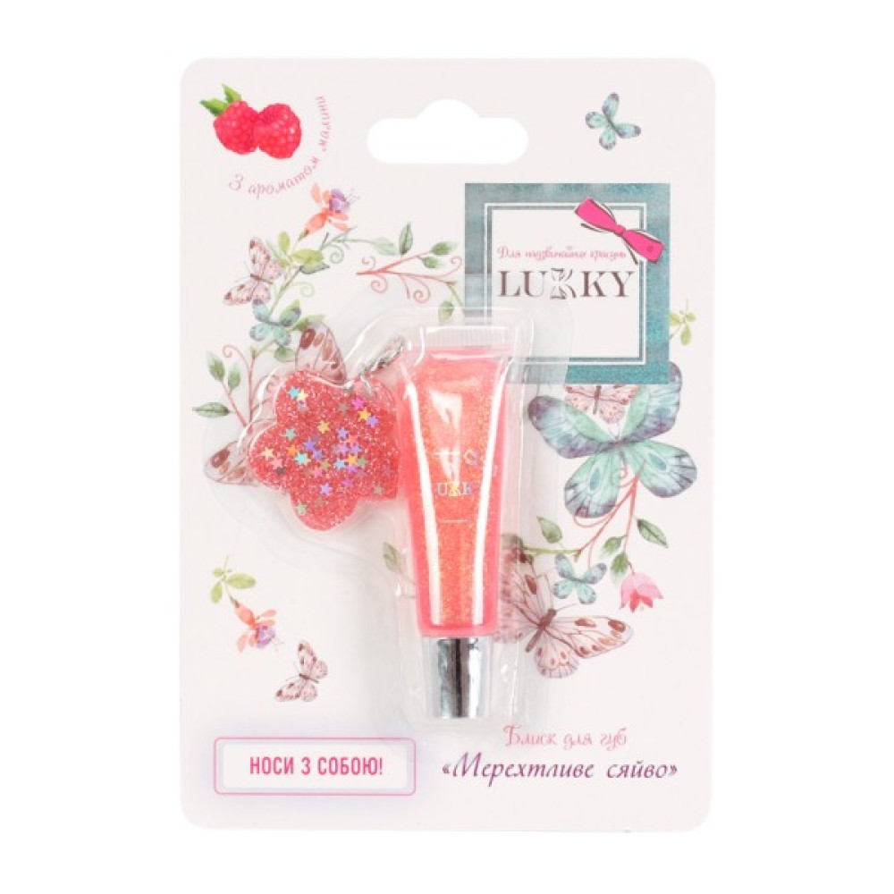 Дитячий блиск для губ "Мерехтливе світло" Lukky прекрасно зволожує і пом'якшує губи, захищає від обвітрювання й легко розподіляється. Після нанесення залишає ніжний красивий колір і ягідний аромат. У блиску натуральна основа з безпечних компонентів. Ваша дівчинка із задоволенням буде користуватися блиском для губ від Lukky, оскільки він має гарний колір, приємний аромат, зручний формат тюбика.
