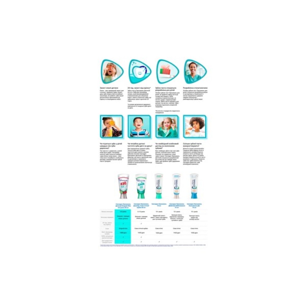 для молочних зубів; для профілактики карієсу; для щоденного догляду