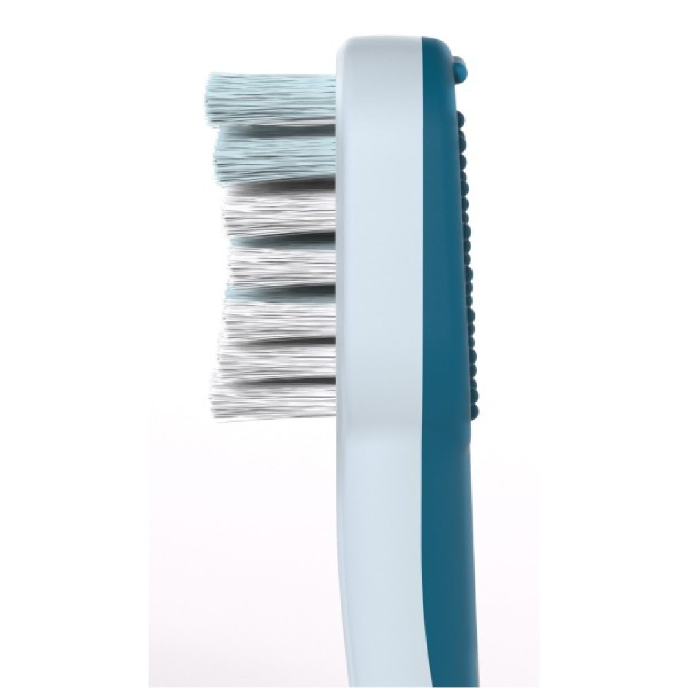 Має прямокутну голівку з м’якою, нейлоновою щетиною із закругленими кінчиками, яка повторює форму «гори» — для ефективного очищення кутніх зубів.