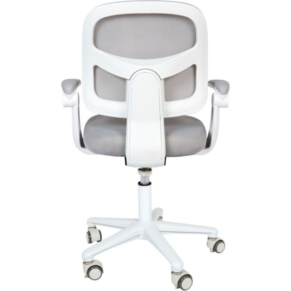 Завдяки наявності регульованої підставки крісло підходить до стандартних, нерегульованих столів. Нейлонові коліщатка плавно ковзають по підлозі, не пошкоджуючи його.