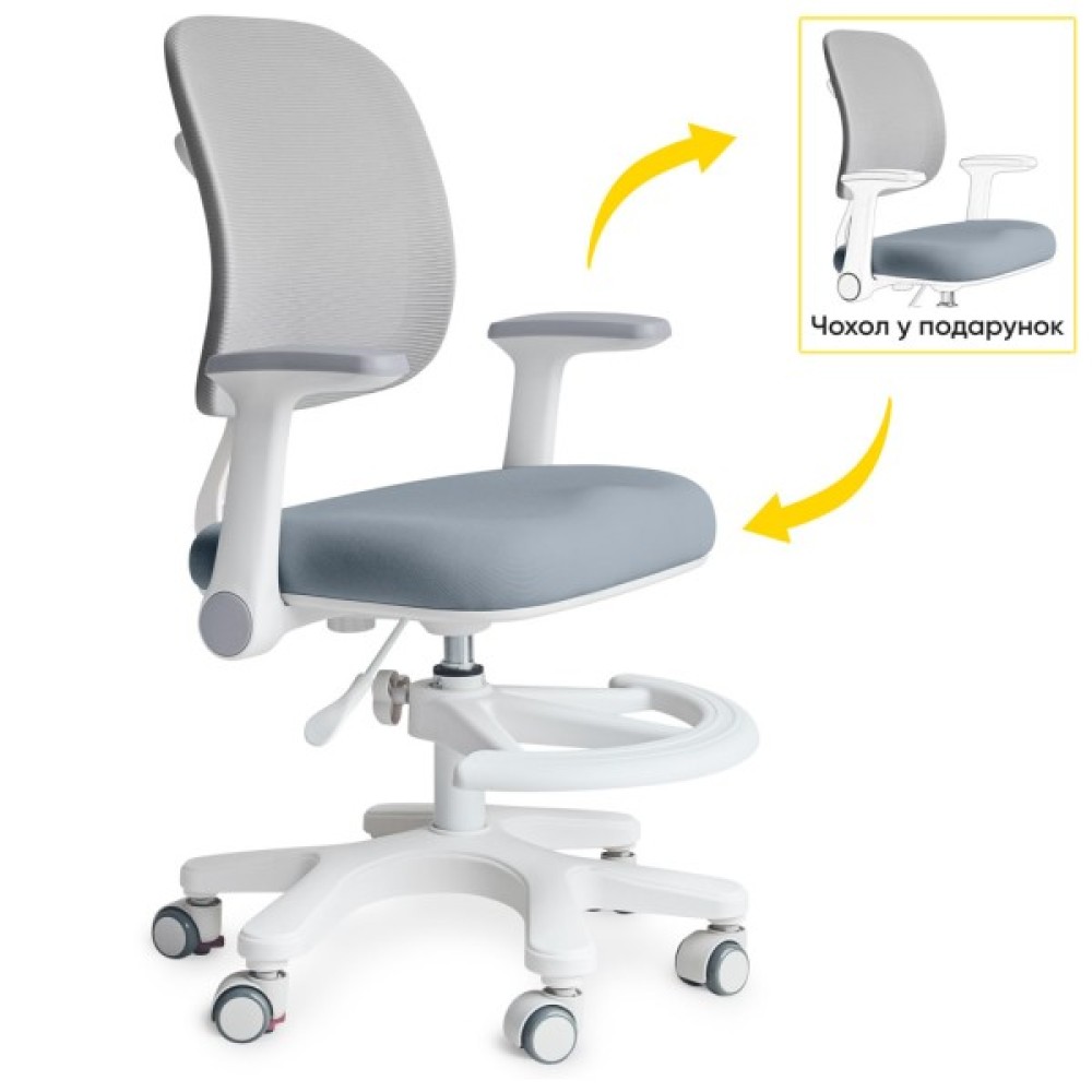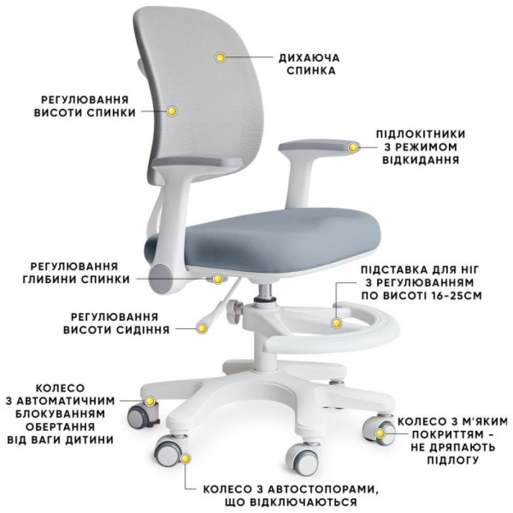 • Регульована висота сидіння: Крісло легко адаптується до зросту дитини, забезпечуючи правильне положення тіла.