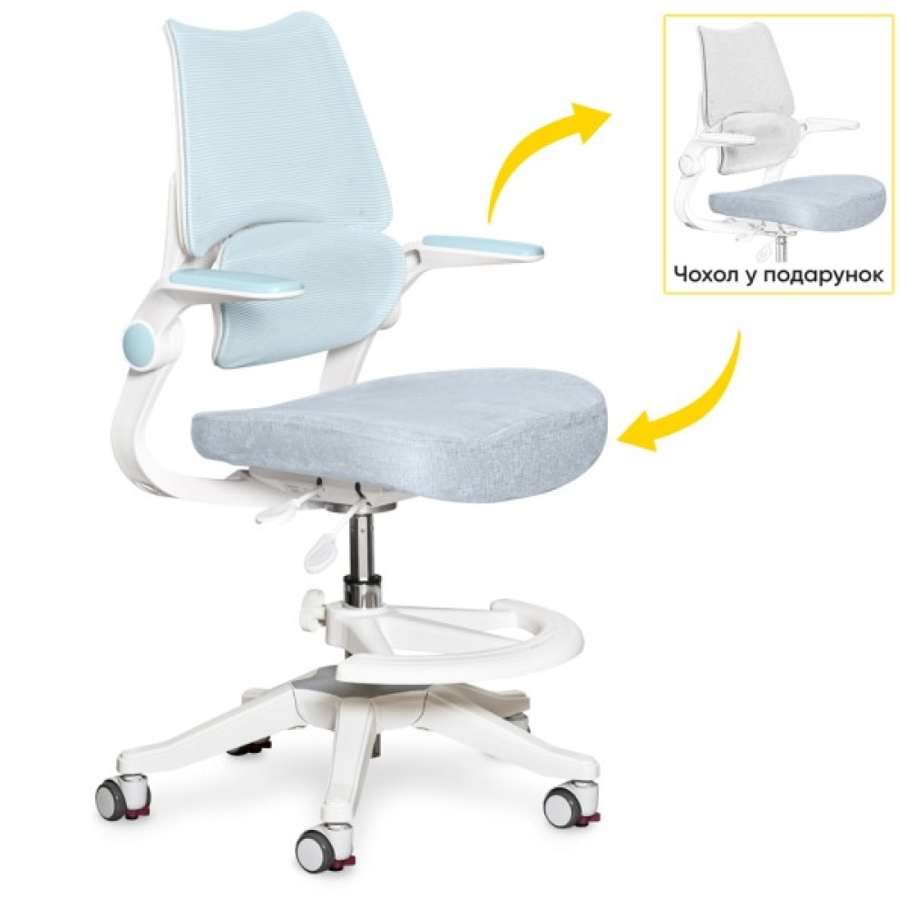 Відкидні підлокітники рекомендовані до використання дітьми старшого віку. У подарунок до крісла є чохол на сидіння, який забезпечує надійний захист від забруднень та легко знімається для заміни, або прання.