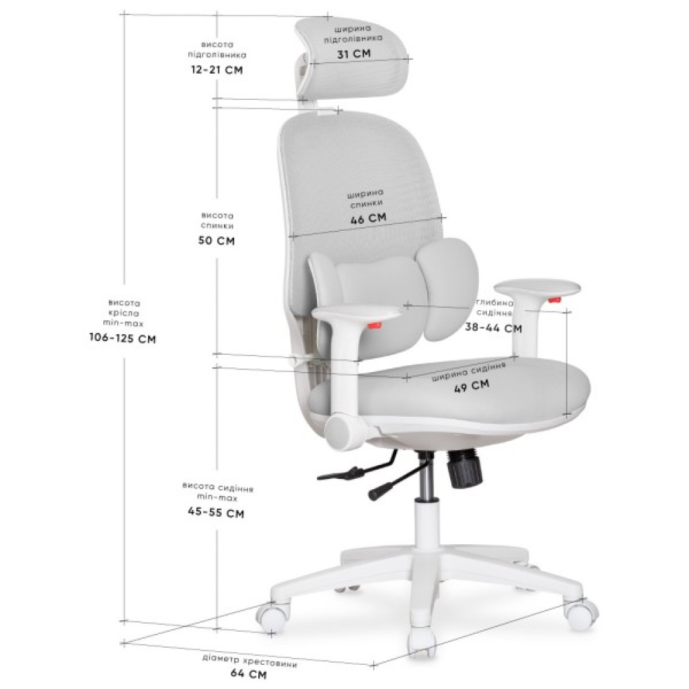 • Індивідуальне налаштування висоти, глибини, підлокітників і підголівника.