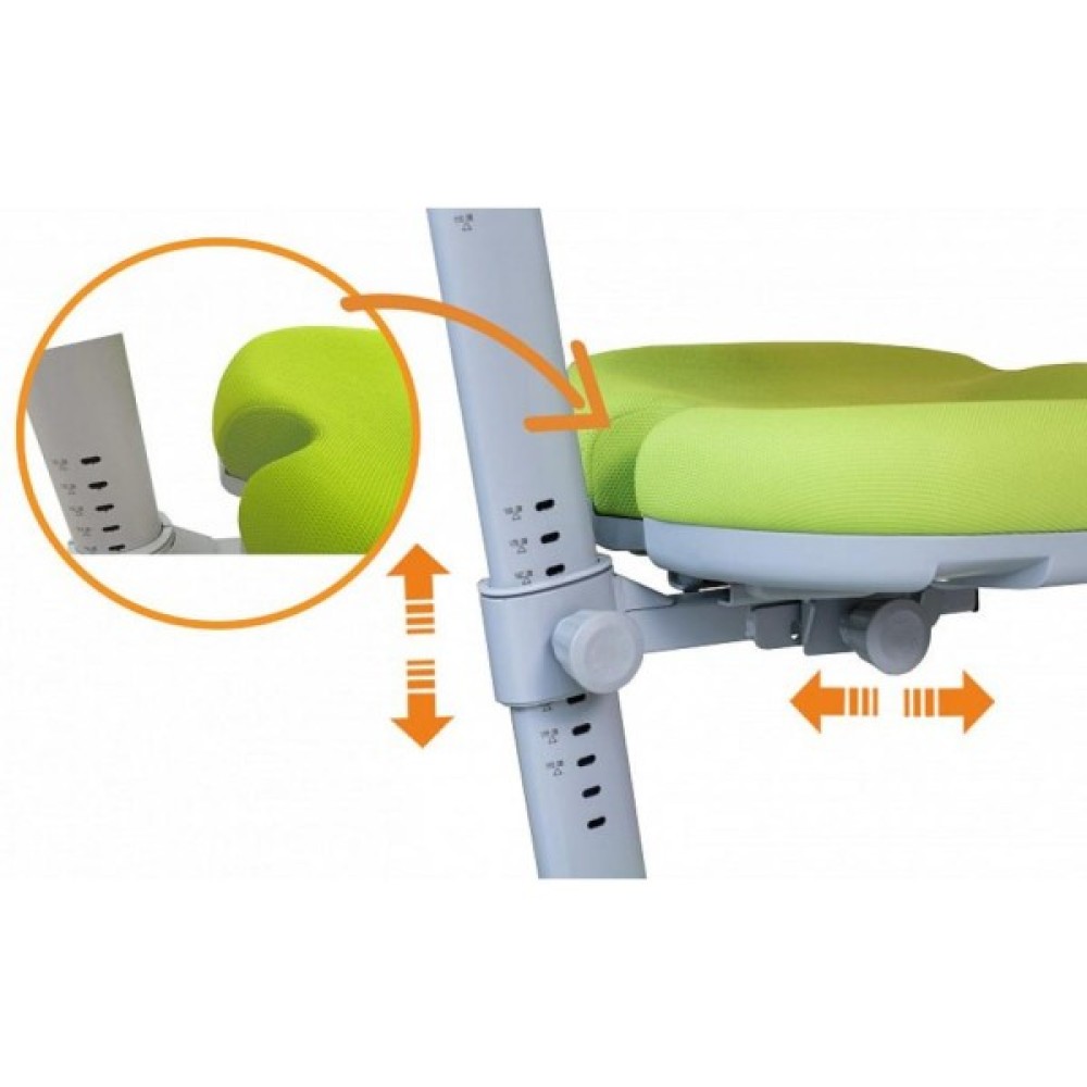 Стілець Mealux Onyx Duo з подвійною конструкцією спинки створює відмінну підтримку спини. Дитина буде сидіти комфортно, зможе краще концентрувати свою увагу, і заняття будуть проходити ефективніше. Можна точно настроїти для дитини потрібну глибину сидіння (є спеціальна "протисколіозна" виїмка на сидінні). Також регулюються незалежно один від одного висота спинки і висоти сидіння з допомогою затискачів. Стійка конструкція має широку основу з п'ятьма колесами. На трубі зверху розміщена ручка для зручного переміщення.