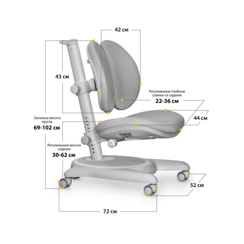 - Головна особливість крісла - збільшений діапазон регулювання глибини сидіння за рахунок рухомої спинки. Глибина спинки плавно регулюється особливим механізмом. Глибина сидіння - ручкою фіксатором. Крісло підійде для дітей від 3 років до дорослого віку.