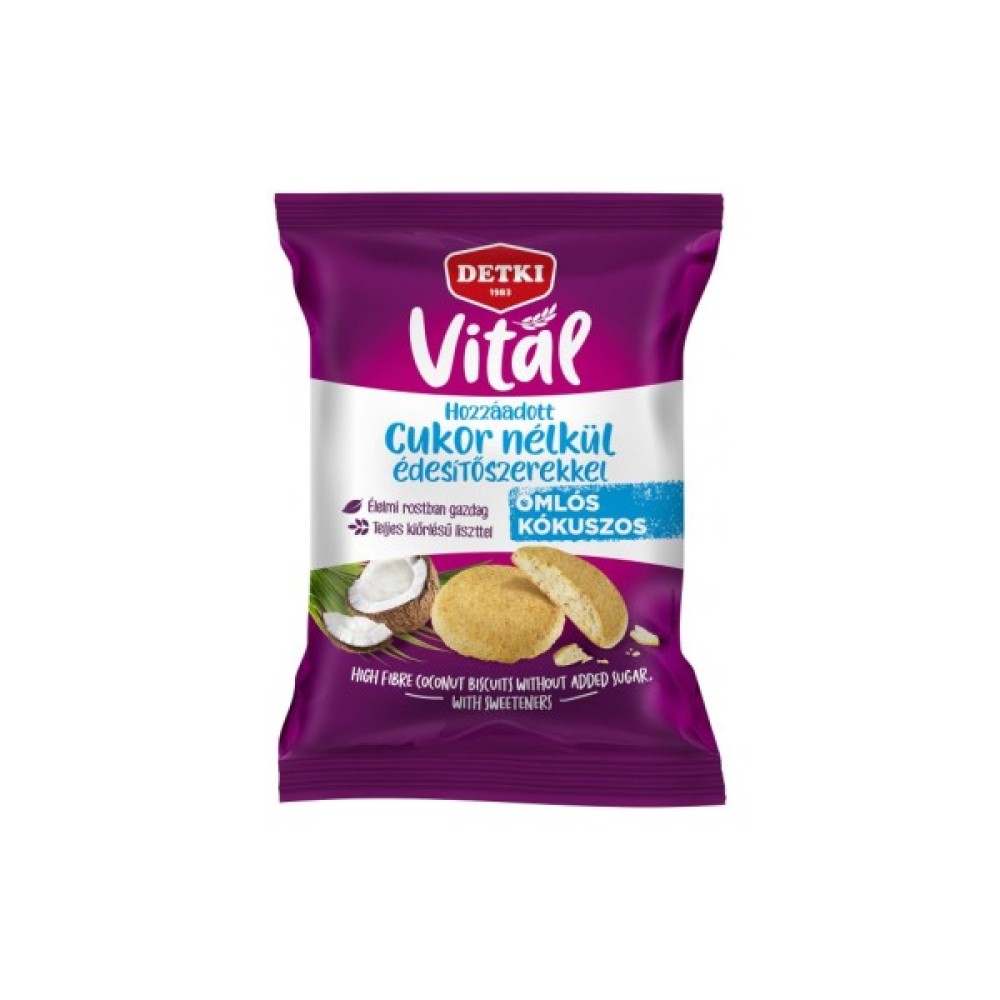 Detki Vital - хрумке печиво представлене у трьох варіантах смаку, виготовлене з цільнозернового борошна без додавання цукру, що ідеально підходить для різноманітного та збалансованого харчування.