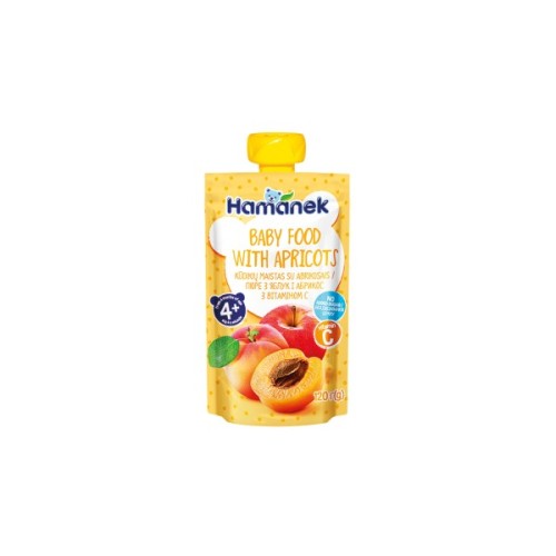 Пюре Hamanek (Хаманек) Pouch яблуко та абрикос - готове до вживання гомогенізоване пюре для дитячого харчування в м'якій упаковці.