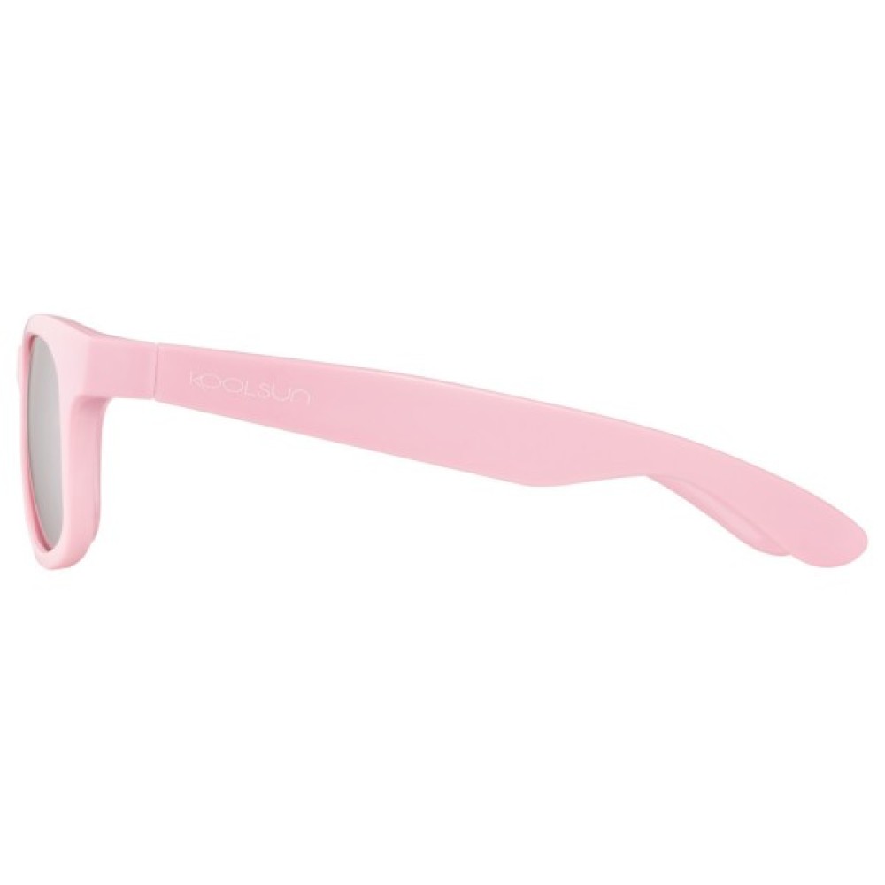 Дитячі сонцезахисні окуляри KOOLSUN серії WAVE з оправою ніжно-рожевого кольору та сірими ударостійкими полікарбонатними дзеркальними лінзами чудово підійде діткам від 3 років.