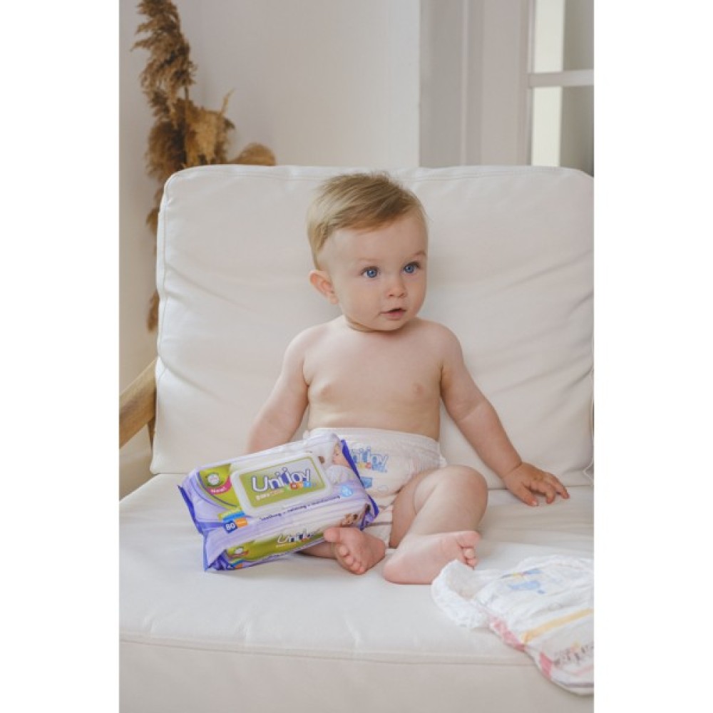 Вологі серветки UNIJOY є зручним засобом для делікатного догляду за шкірою немовлят. Кожна упаковка містить 80 серветок, збагачених спеціальною формулою, розробленою для м'якого очищення та зволоження дитячої шкіри. Ці серветки ідеально підходять для використання під час зміни підгузків, після годування або освіження в будь-який момент дня.