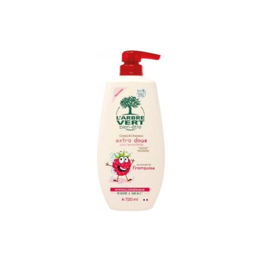 Дитячий крем-гель для душу L'Arbre Vert із ніжною формулою підходить для всієї родини, містить екстракт малини. Ідеально підходить для дітей 2в1 — зволожує шкіру та пом'якшує волосся.