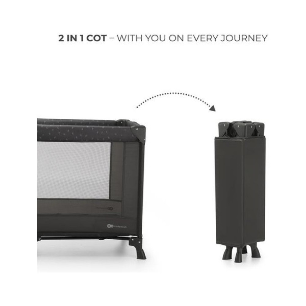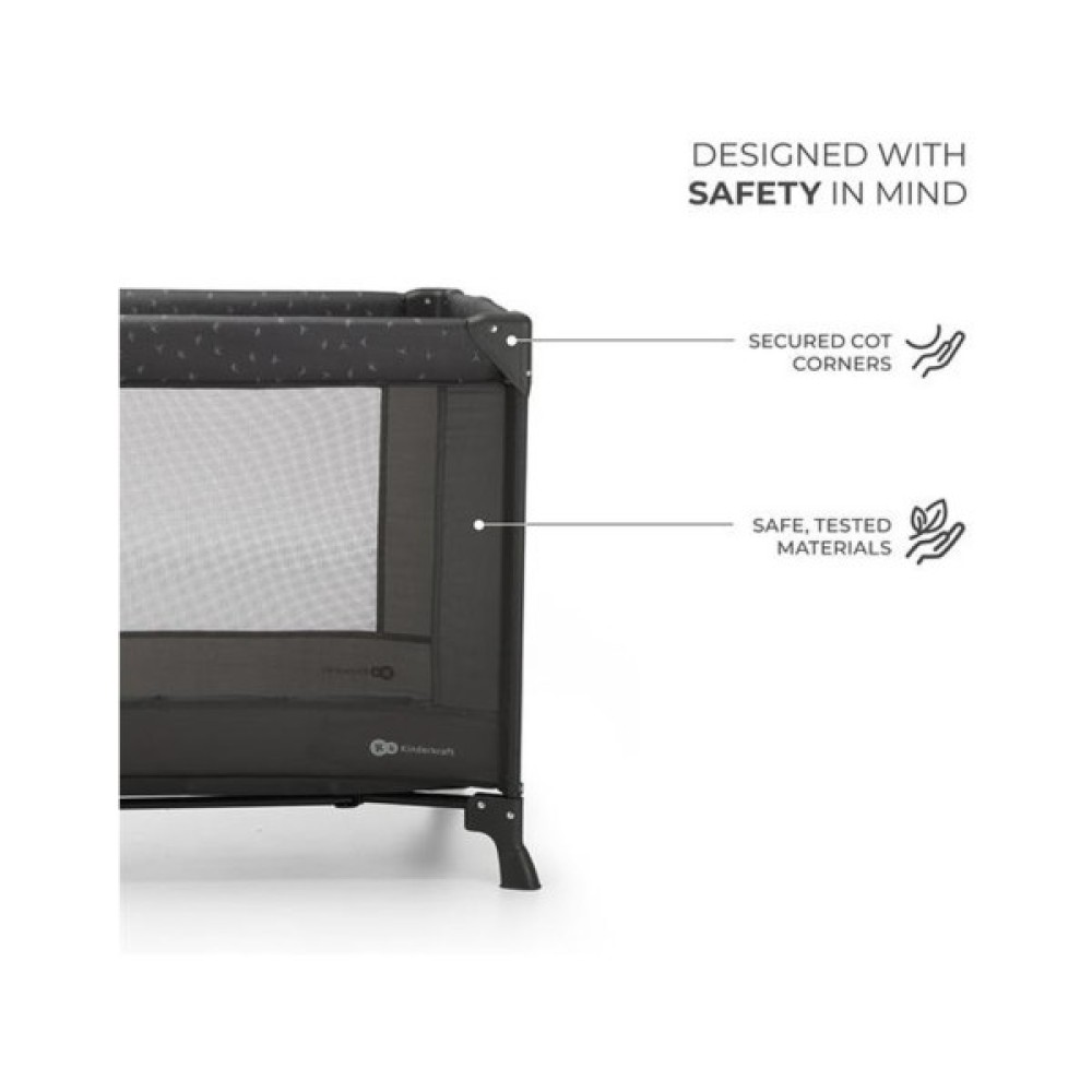 Kinderkaft Joy Light - ідеальне рішення для мобільних батьків, які цінують простоту, функціональність і елегантний дизайн. Він служить ліжечком для старших дітей і дитячим манежем. Joy Light легкий і має величезну перевагу - складається всього за п'ять секунд. Манеж поставляється з практичною сумкою для подорожей з ручками, що полегшує її перенесення по сходах або установку в багажник.