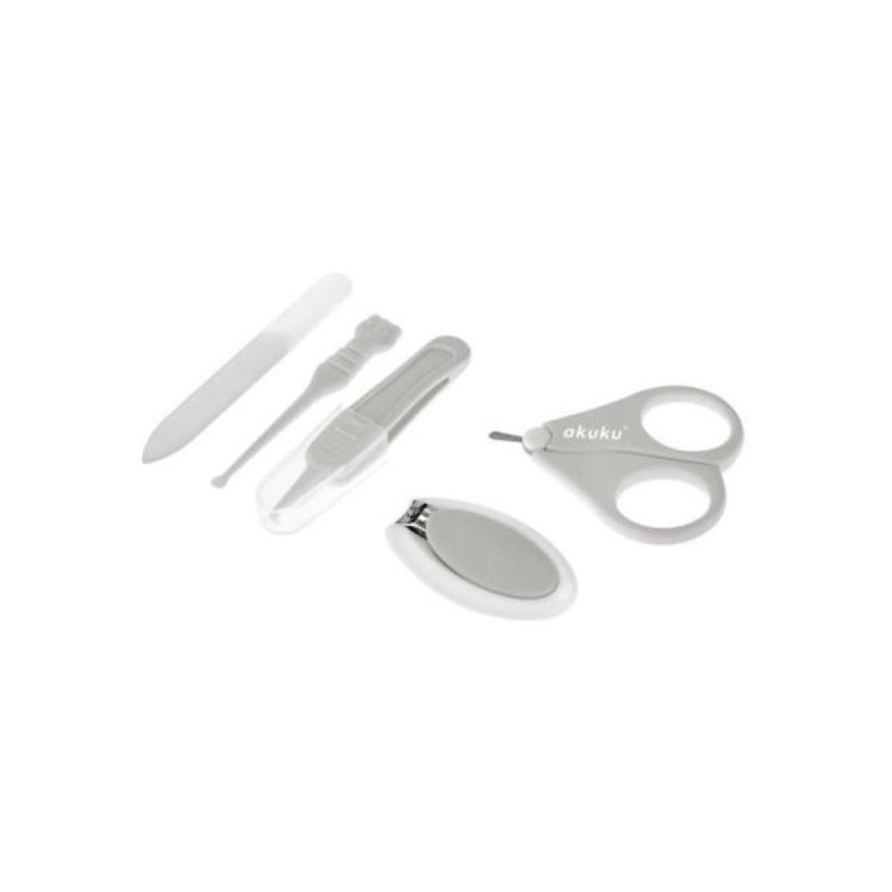 У комплекті безпечні ножиці та кусачки з обмежувачем з нержавіючої сталі, скляна пилочка для нігтів та два пінцети.