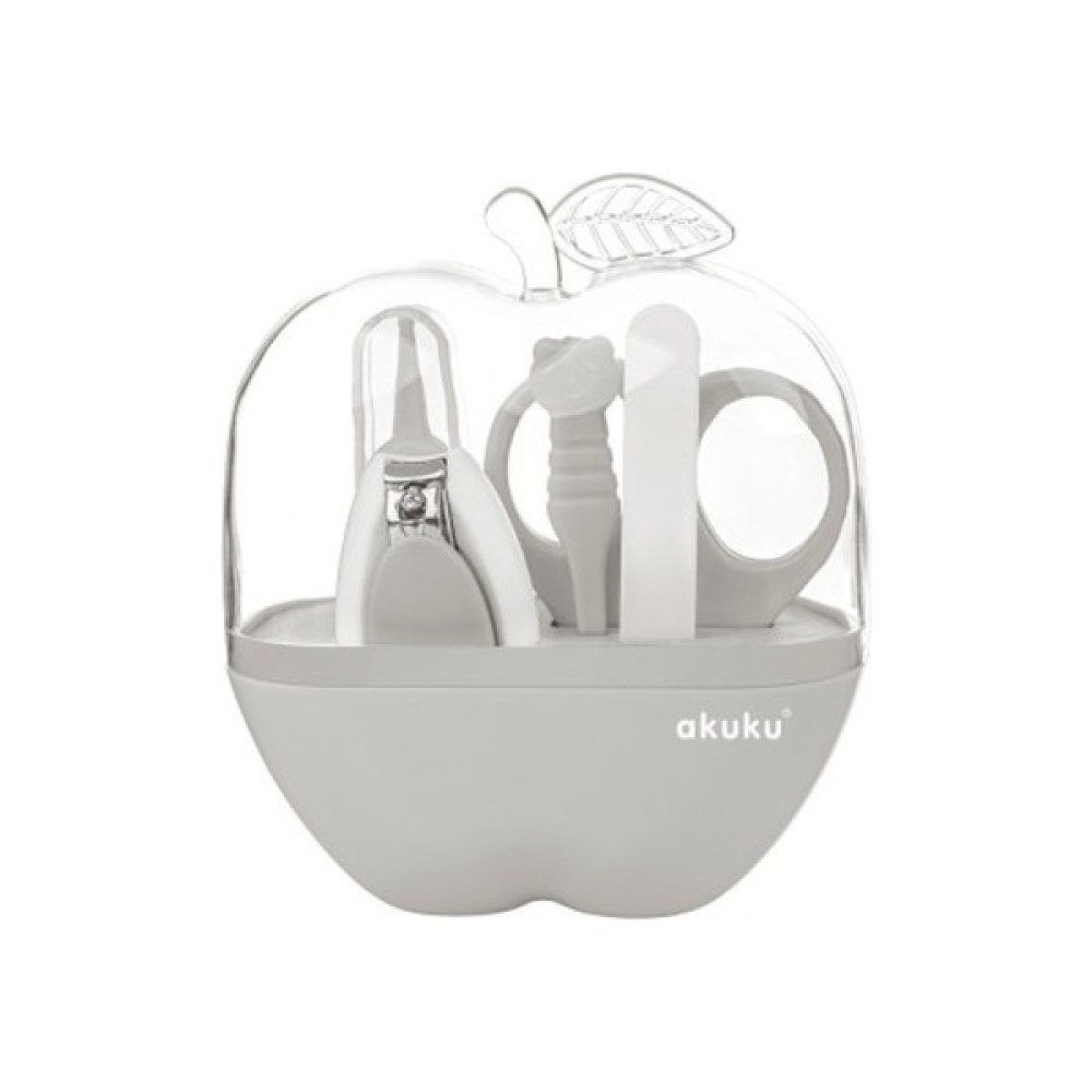 Яблучний кейс містить: безпечні ножиці з круглими кінчиками; машинки з обмежувачем; пінцет 0-36 міс