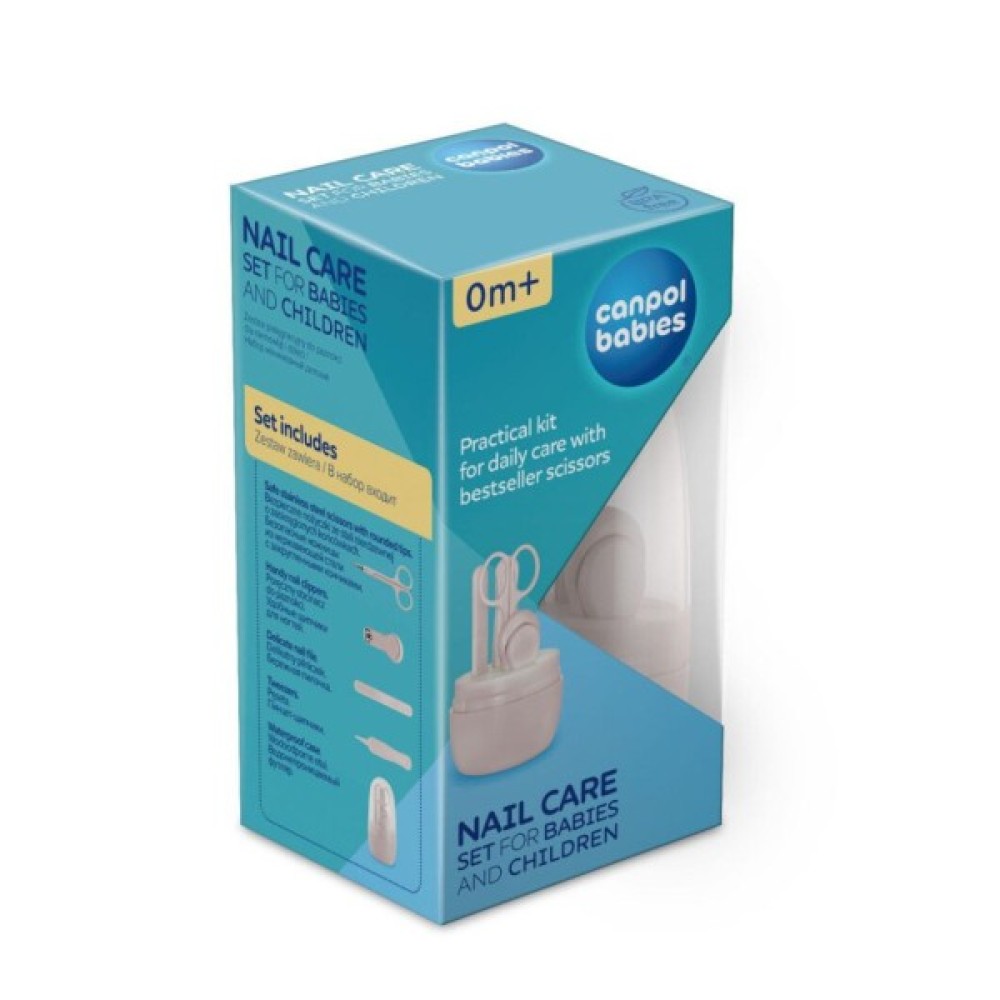 Досконалий набір для догляду за нігтями запаковано у водонепроникний футляр, який забезпечує гігієнічне зберігання та перенесення. Набір складається з 4 елементів -ножиці, кусачки, делікатна пилочка та пінцет. Ножиці, виготовлені з нержавіючої сталі, та кусачки допоможуть підстригти нігтики малюку ефективно та безпечно. Заокруглені кінці ножиць запобігають порізам. Делікатна пилочка допоможе прибрати нерівності нігтиків, захистивши малюка від подряпин. Canpol babies Набір для догляду за нігтями для немовлят і дітей доступний у двох кольорах. Безпечний для малюків з перших митей життя.