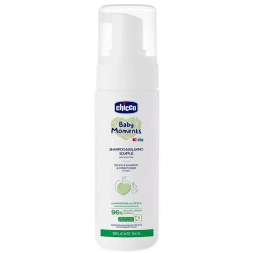 Шампунь-кондиціонер пінка Chicco Baby Moments Kids Без сліз — інноваційний продукт 2 в 1 зробить волосся малюка надзвичайно м'яким та шовковистим.