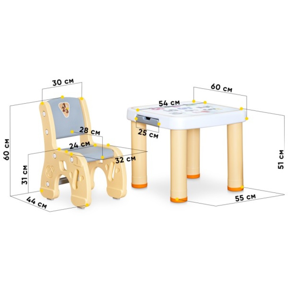 стіл: 60 х 54 х 51 см, стілець: 32 х 31 х 28 см