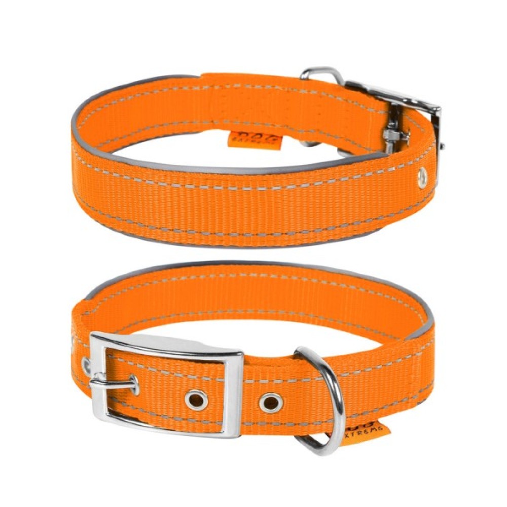 Нашийник виготовлений з якісного, міцного, зносостійкого нейлону. Додатково вплетена світловідбивна нитка для безпеки прогулянок у темний час доби. Матеріал гнучкий та м’який на дотик, що забезпечить комфорт і свободу рухів тварини під час активних дій.