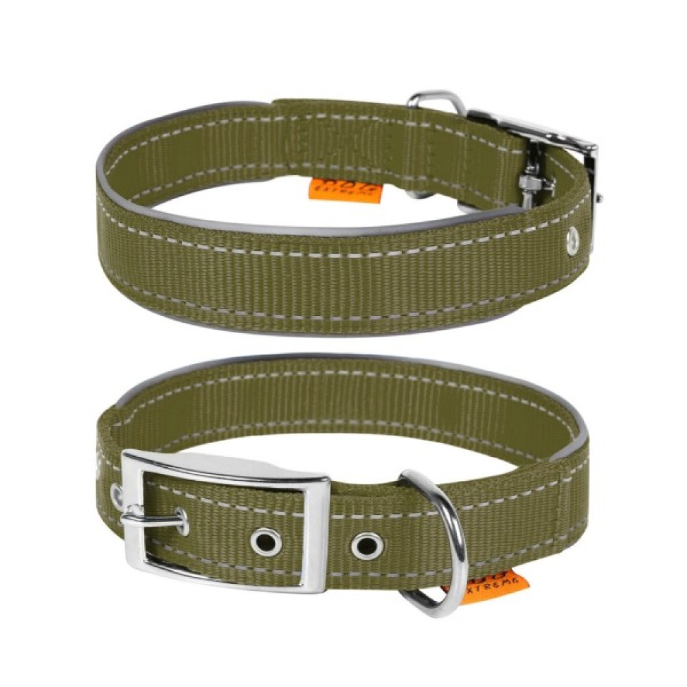 Нашийник виготовлений з якісного, міцного, зносостійкого нейлону. Додатково вплетена світловідбивна нитка для безпеки прогулянок у темний час доби. Матеріал гнучкий та м’який на дотик, що забезпечить комфорт і свободу рухів тварини під час активних дій.