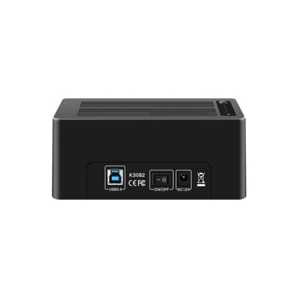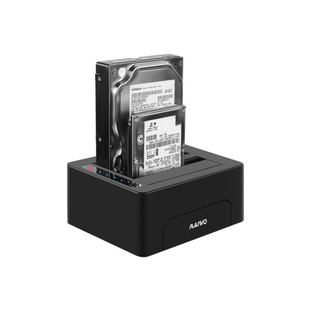 Док-станція Maiwo K3082 клонує диск А на B, максимальний обсяг кожного HDD до 6 ТБ, світлодіоди для кожного диска - живлення і передача даних, кнопка резервного копіювання, розмір 152*109*62 мм.