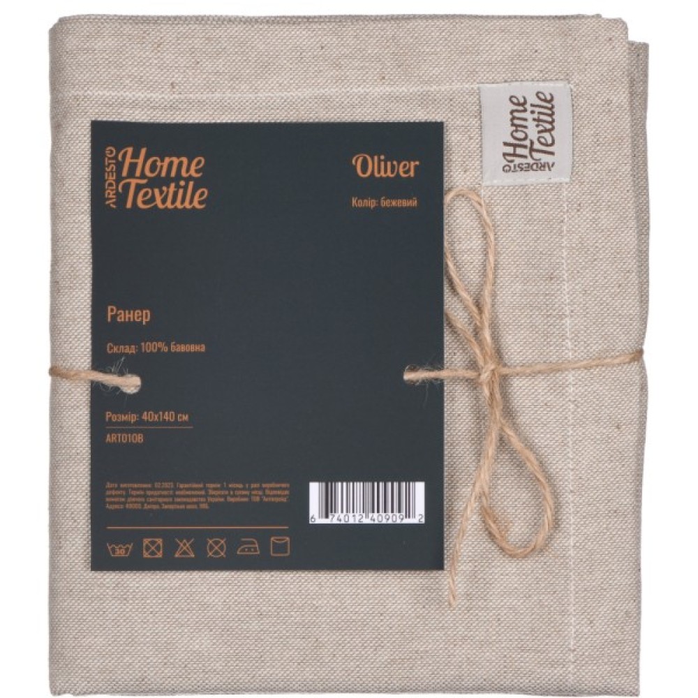 Доріжка на стіл Ardesto Oliver бежевий 40х140см, 100% бавовна (ART01OB)