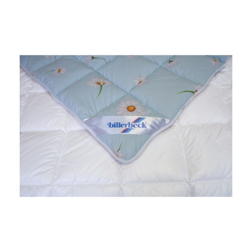 Дуже симпатична та легка ковдра, до того ж не найдорожча в модельному ряді Біллербек. Тут фірма біллербек вперше застосувала тканини-компаньйони: зверніть увагу, малюнок на тканині з однієї й іншої сторони підібраний по дизайну та кольоровій гамі. Чудове співвідношення «ціна-якість».