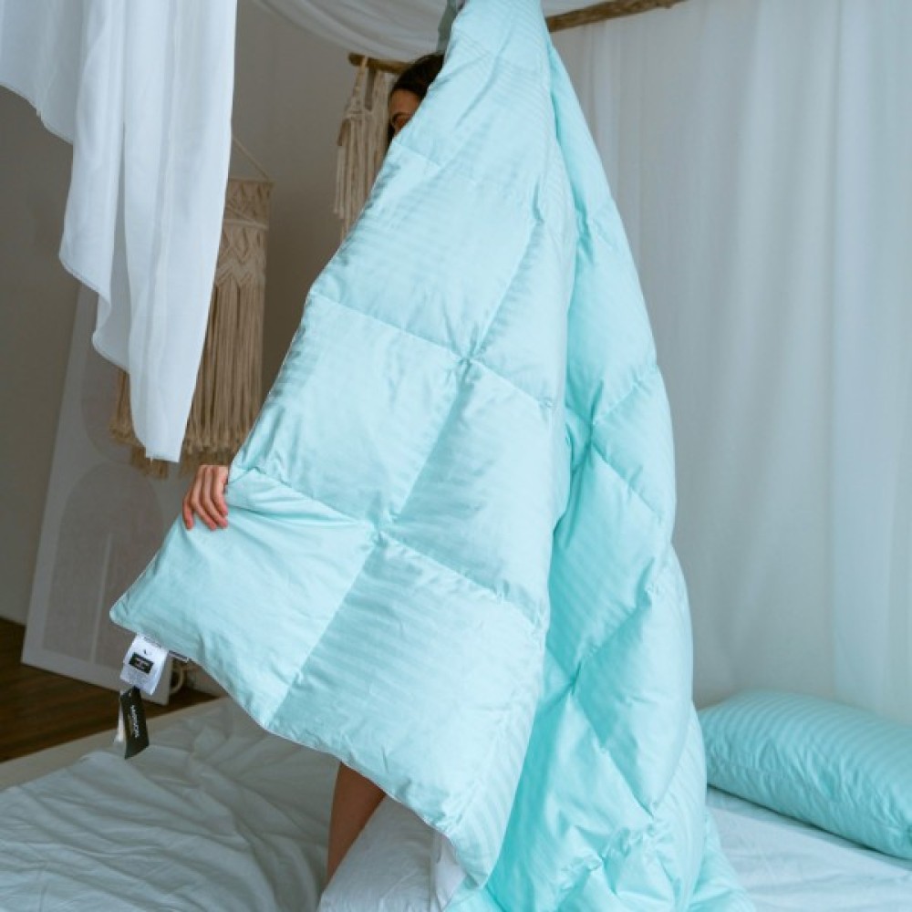 Пухова ковдра з колекції Valentino серії Demi годиться для цілорічного використання. Ковдра в міру тепла, легка, прекрасно підійде людям, які люблять помірне тепло та цінують легкість і високу якість пухового виробу.