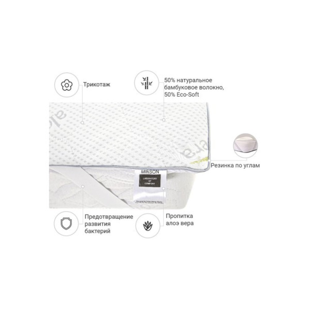 Це новинка від компанії MirSon! Головною особливістю цієї моделі є її висота, а саме 2 см! У такий спосіб наматрацник не тільки захищає матрац від забруднень, але і слугує пом'якшенням спального місця, а також вирівнює дрібні нерівності ліжка або дивана! Наматрацники з цієї серії мають високу практичність і зносостійкість. Їхній чохол зроблений з еластичного та довговічного матеріалу — трикотажу. Він не тільки ніжний і приємний до тіла, але й добре циркулює повітря, завдяки чому не створюється парниковий ефект! Простирадло на такому наматрацнику добре кріпиться, не совається й не сповзає під час сну.