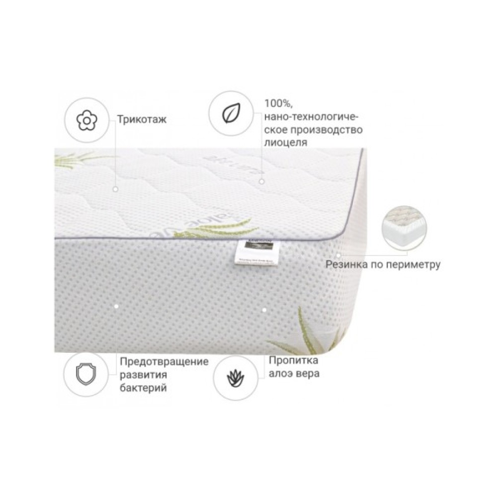 Завдяки просоченню алое вера наматрацник має вентилювальні, антибактеріальні, пом'якшувальні, регенерувальні та заспокійливі властивості, що створить комфортні умови для вашого сну.