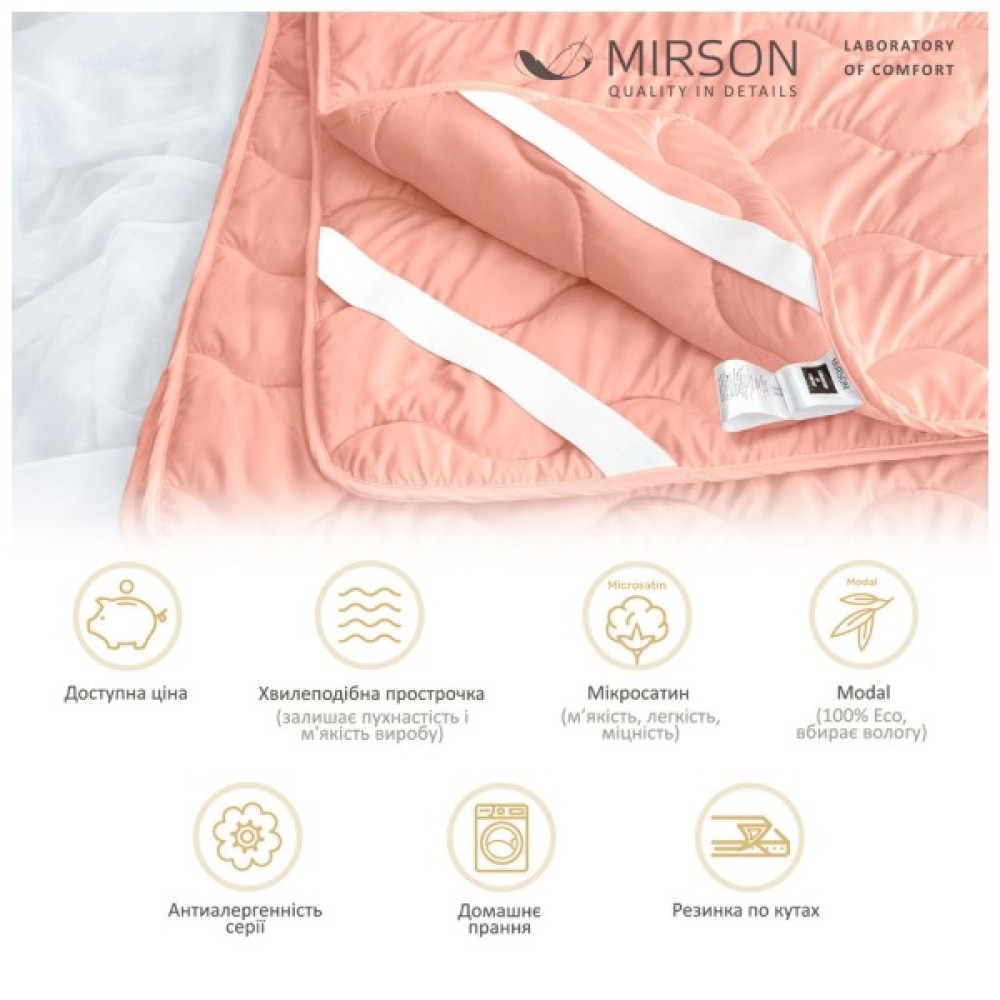 Наматрацник, MirSon, 1762, Eco, Light, Coral, Тенсель, Modal, гумці, кутках, 120x200, см, 2200003712247