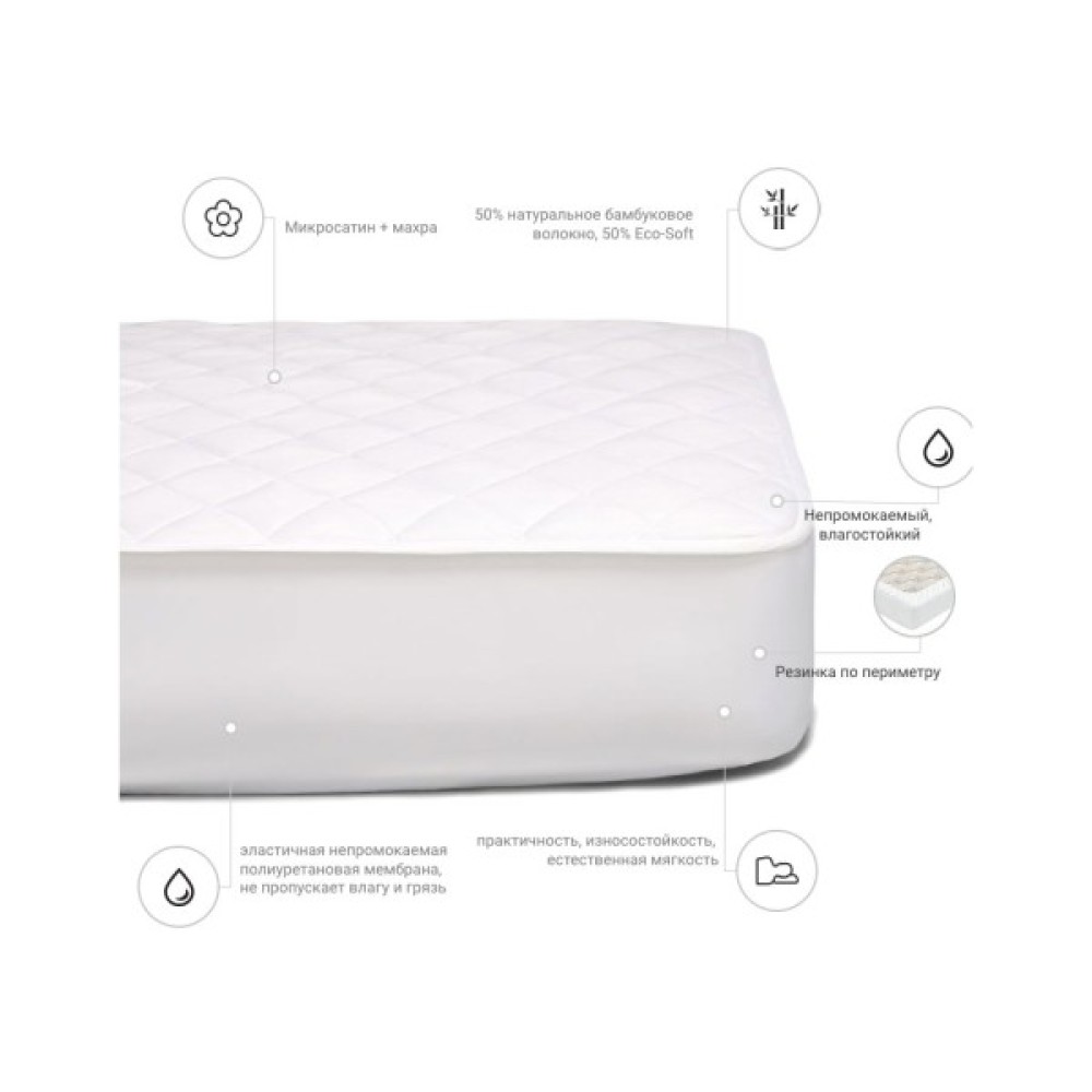 А інша сторона прийме у свої теплі та ніжні дотики, зігріє благодатним теплом завдяки унікальній непромокальній махровій мембрані. Адже махрова мембрана — вершина гігроскопічності, її використовують для виробництва якісних виробів для наматрацників, які захищають постільну білизну та матрац від забруднень, продовжують термін експлуатації та перешкоджають проникненню вологи та накопиченню пилу.