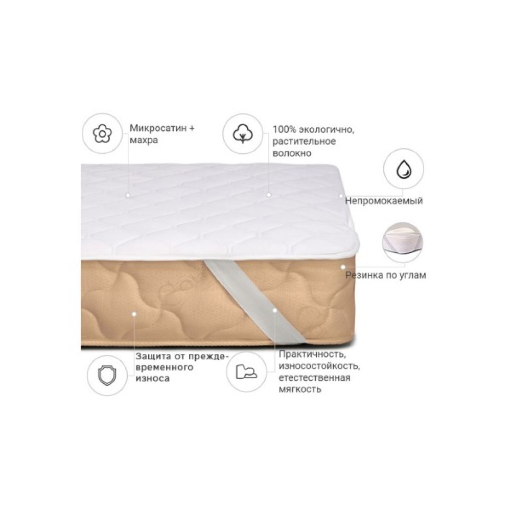 Одна сторона наматрацника виготовлена з високоякісної тканини мікросатин — виробництва Італія. Тканина мікросатин — ніжна, приємна на дотик, сатинове плетіння забезпечує довговічність і м'якість усього виробу загалом. Мікросатин подарує благодатну прохолоду спекотним літом, вбираючи зайву вологу. Наматрацник не ковзає по матрацу, добре фіксується.
