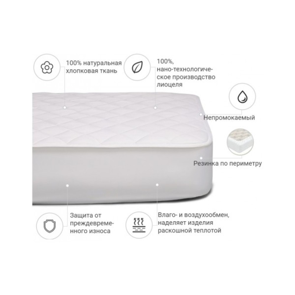 Наматрацник не ковзає матрацом та завдяки вдало підібраному кріпленню добре фіксується. Гумка периметром позбавить зайвого клопоту.