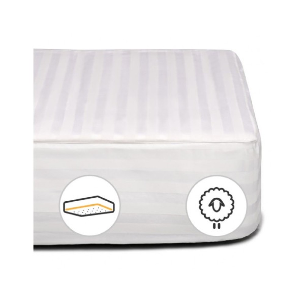 Наматрацник на гумці з високоякісної італійської тканини. Тканина має назву "Сатин-страйп Італія", складається виключно зі 100% високоякісного бавовняного волокна. Сатинова тканина чохла має складне жакардове переплетення, що надає наматрацнику не тільки високо естетичну вишуканість, але й збільшує міцність тканини загалом. З іншого боку наматрацник виготовлений з італійського мікросатину, до складу якого входить бавовна та поліефірне волокно, яке надає наматрацнику легкості, довговічності.
