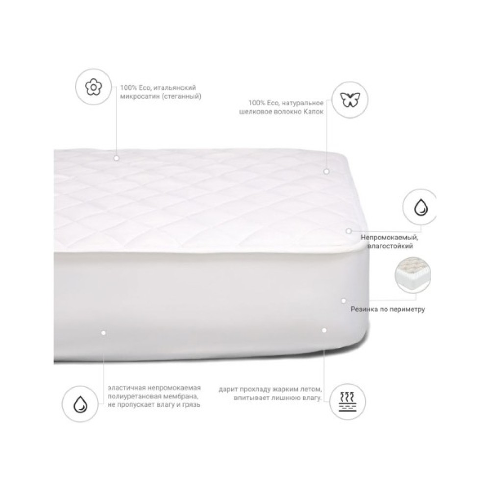 Сам наматрацник виготовлений із високоякісної тканини мікросатин — виробництва Італія. Наматрацник витримує більш ніж 250 прань і водночас зберігає свій первинний вигляд. Тканина мікросатин — ніжна, приємна на дотик, сатинове плетіння забезпечує довговічність і м'якість усього виробу загалом. Наматрацник не ковзає по матрацу, добре фіксується.