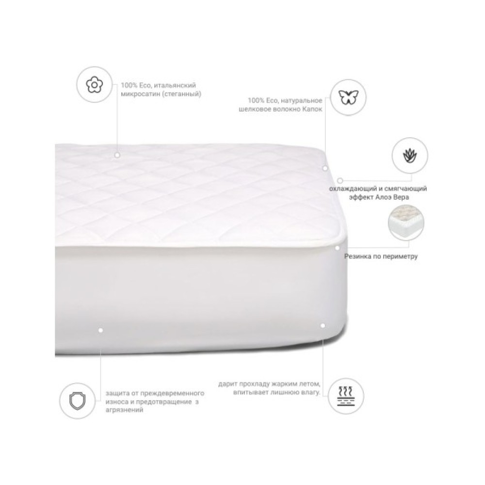 Сам наматрацник виготовлений із високоякісної тканини мікросатин — виробництва Італія. Наматрацник витримує більш ніж 250 прань і водночас зберігає свій первинний вигляд. Тканина мікросатин — ніжна, приємна на дотик, сатинове плетіння забезпечує довговічність і м'якість усього виробу загалом. Наматрацник не ковзає по матрацу, добре фіксується.
