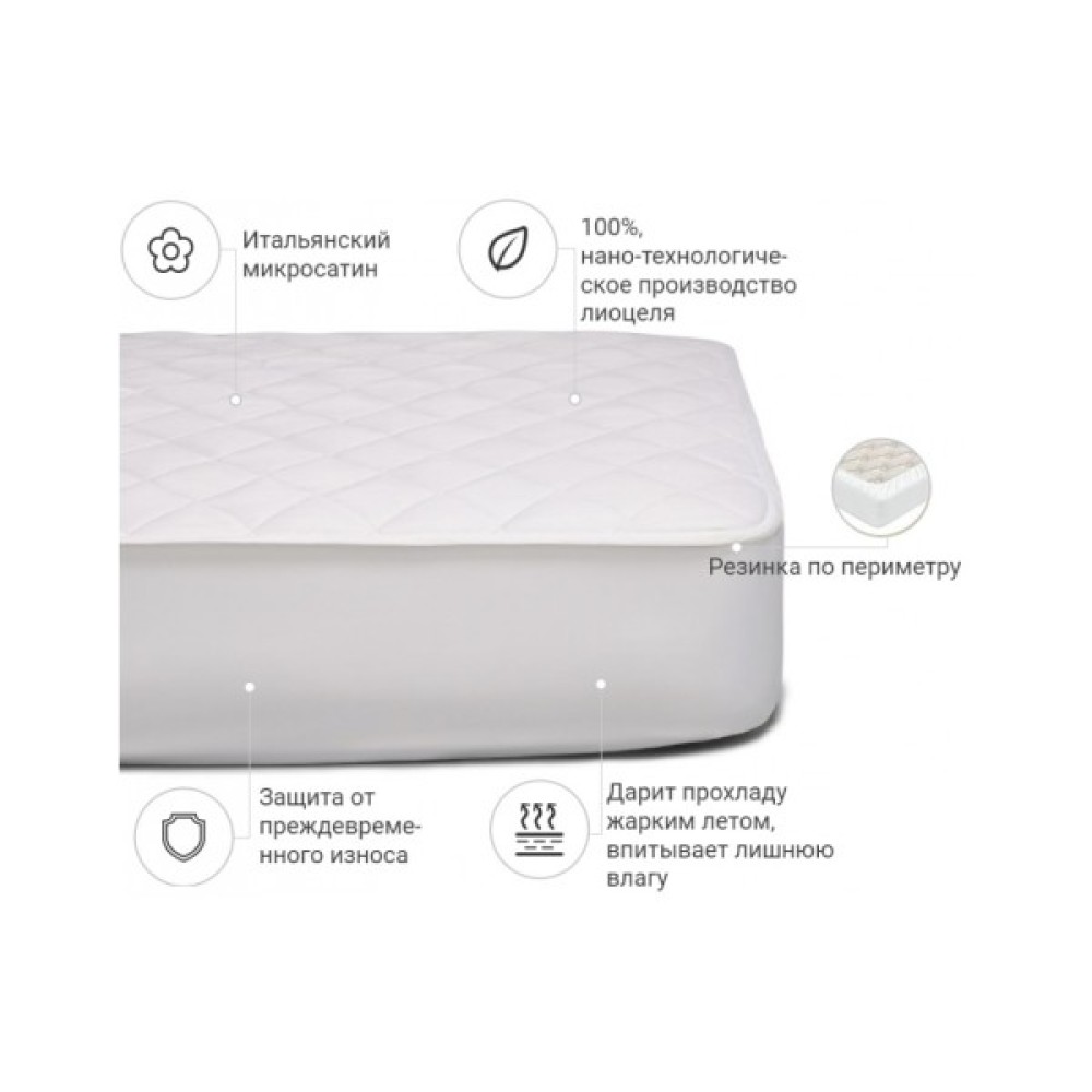 Сам наматрацник виготовлений із високоякісної тканини мікросатин — виробництва Італія. Наматрацник витримує понад 250 прань і водночас зберігає свій первісний вигляд. Тканина мікросатин — ніжна, приємна на дотик, сатинове плетіння забезпечує довговічність і м'якість усього виробу загалом. Наматрацник не ковзає по матрацу, добре фіксується.