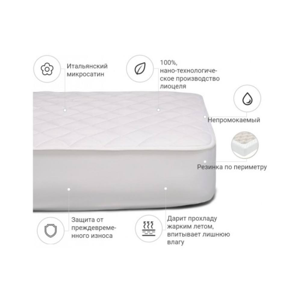 Сам наматрацник виготовлений із високоякісної тканини мікросатин — виробництва Італія. Наматрацник витримує більш ніж 250 прань і водночас зберігає свій первинний вигляд. Тканина мікросатин — ніжна, приємна на дотик, сатинове плетіння забезпечує довговічність і м'якість усього виробу загалом. Наматрацник не ковзає по матрацу, добре фіксується.