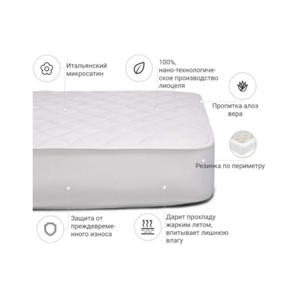 Сам наматрацник виготовлений із високоякісної тканини мікросатин — виробництва Італія. Наматрацник витримує понад 250 прань і водночас зберігає свій первісний вигляд. Тканина мікросатин — ніжна, приємна на дотик, сатинове плетіння забезпечує довговічність і м'якість усього виробу загалом. Наматрацник не ковзає по матрацу, добре фіксується.
