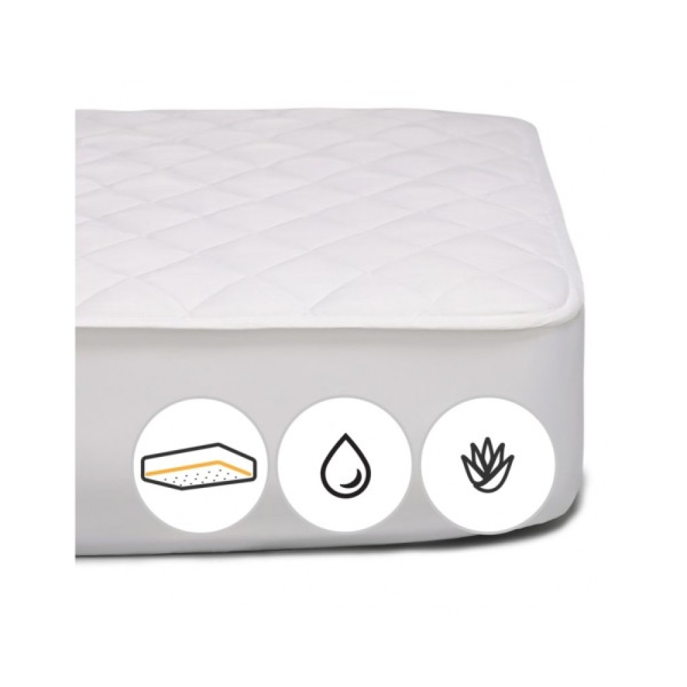 А зараз — суперпропозиція! Ми надаємо вам унікальну можливість придбати інноваційний наматрацник із просоченням алое вера! Як відомо, алое вера є адаптогеном — рослиною, що підвищує здатність людини адаптуватися до зовнішніх впливів і чинити опір стресам. Завдяки просоченню алое вера наматрацник має вентилювальні, антибактеріальні, пом'якшувальні, регенерувальні та заспокійливі властивості, що створить комфортні умови для вашого сну. Просочення алое вера має унікальні властивості та завдяки своїй чудовій властивості проникати в тканини, насичує їх корисними речовинами в процесі виробництва, а також регулює температуру тіла, що дасть змогу вашій шкірі вільно «дихати».